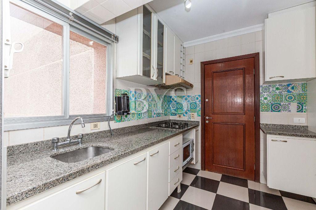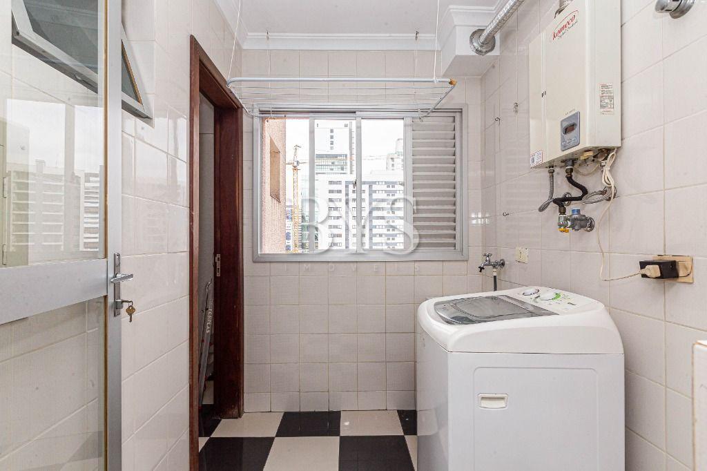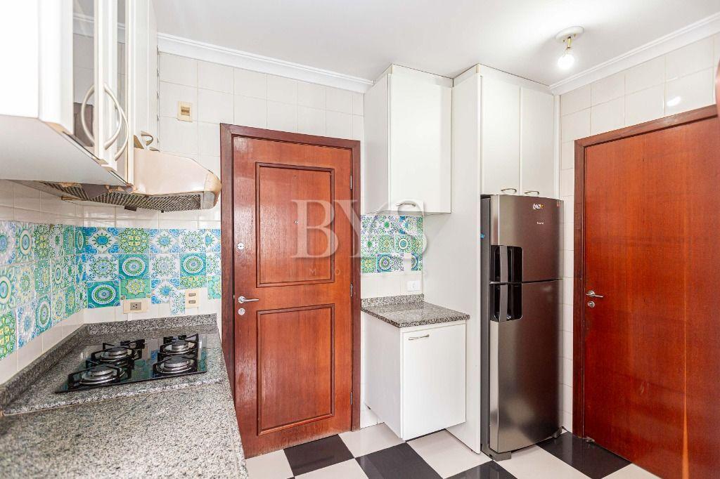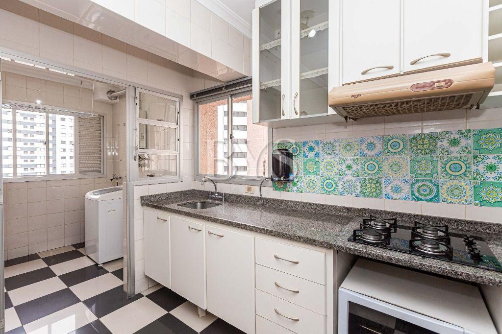 Cozinha planejada com armários sob medida, acompanhada de área de serviço e banheiro de serviço (transformado em despensa).