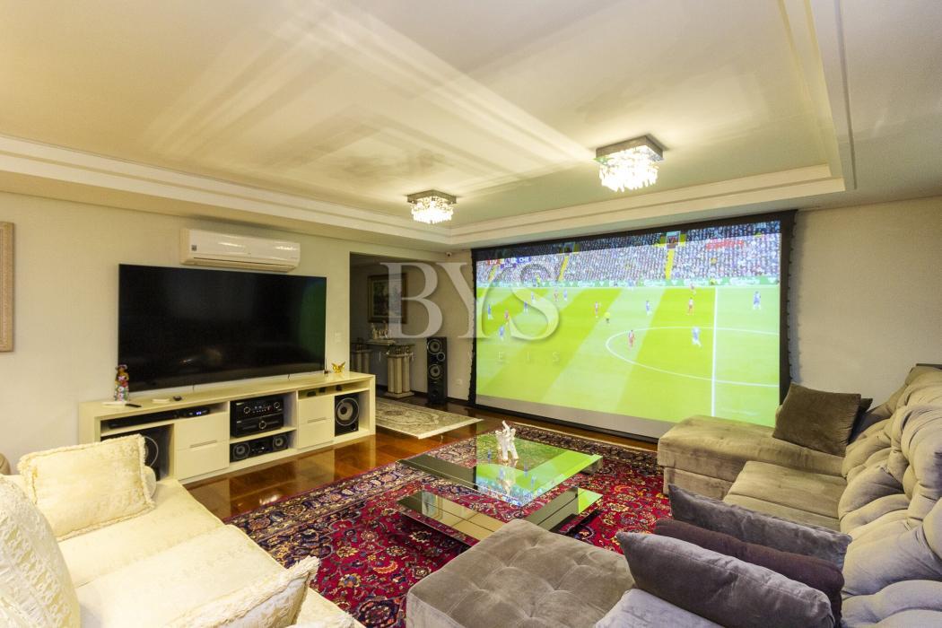 Preciosidade de apartamento, na melhor localização do Batel, a duas quadras da praça do Japão. Excelente em metragem, o imóvel conta com 240 metros, 4 quartos, 5 banheiros, três salas extremamente amplas, pussuindo uma delas um telão de 160 polegadas. Amplo, iluminado e arejado, com hall de entrada individual; living para 4 ambientes com pé direito alto;Duas vagas de garagem cobertas, estacionamento para visitantes, salão de festas, playground e portaria 24 horas.