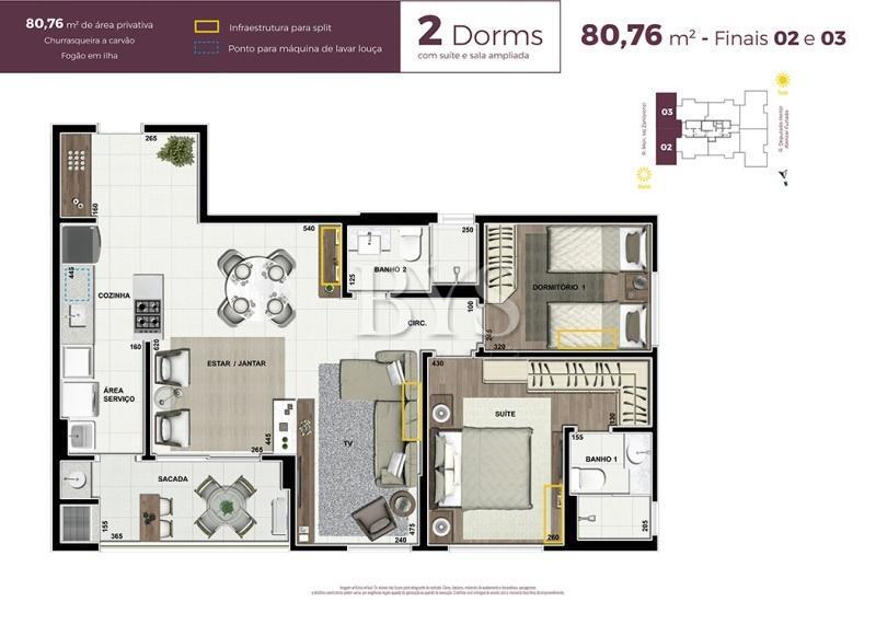 A torre única, com 21 andares e 8 apartamentos por andar, proporciona privacidade e exclusividade, enquanto os 2 elevadores garantem praticidade no dia a dia.