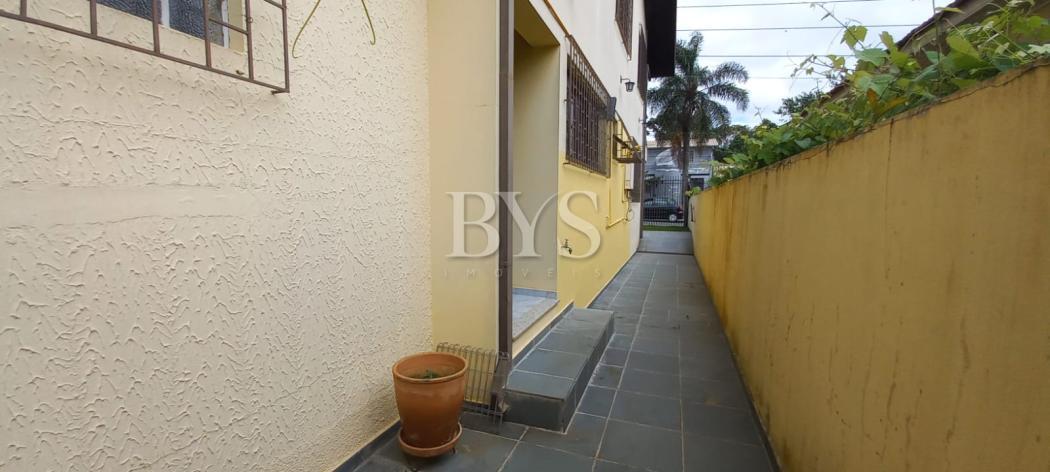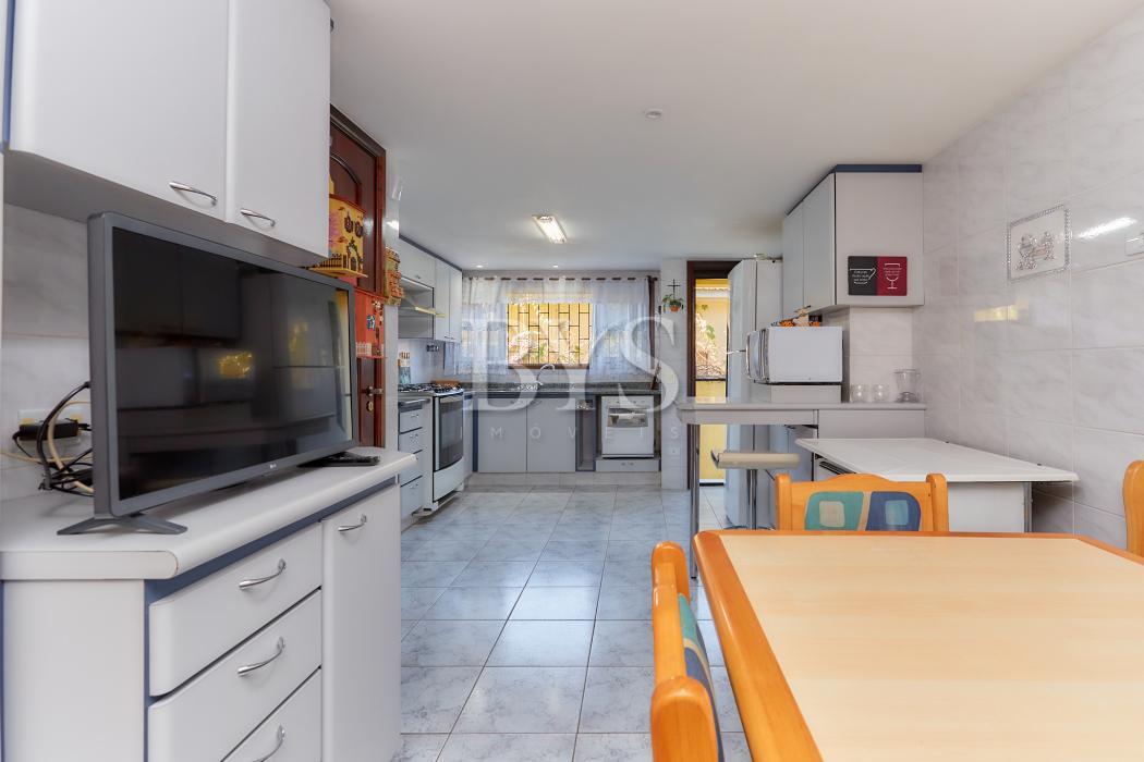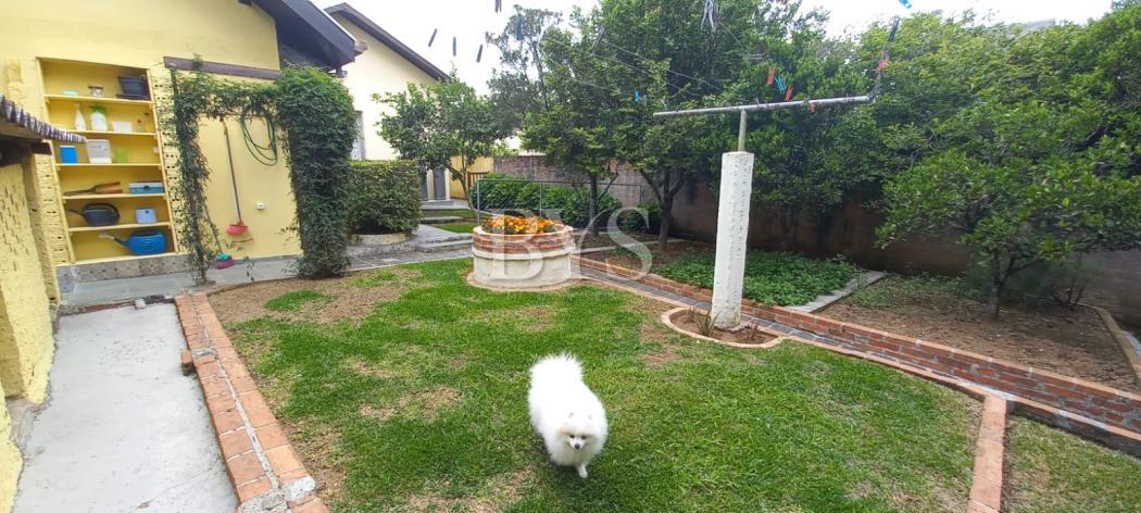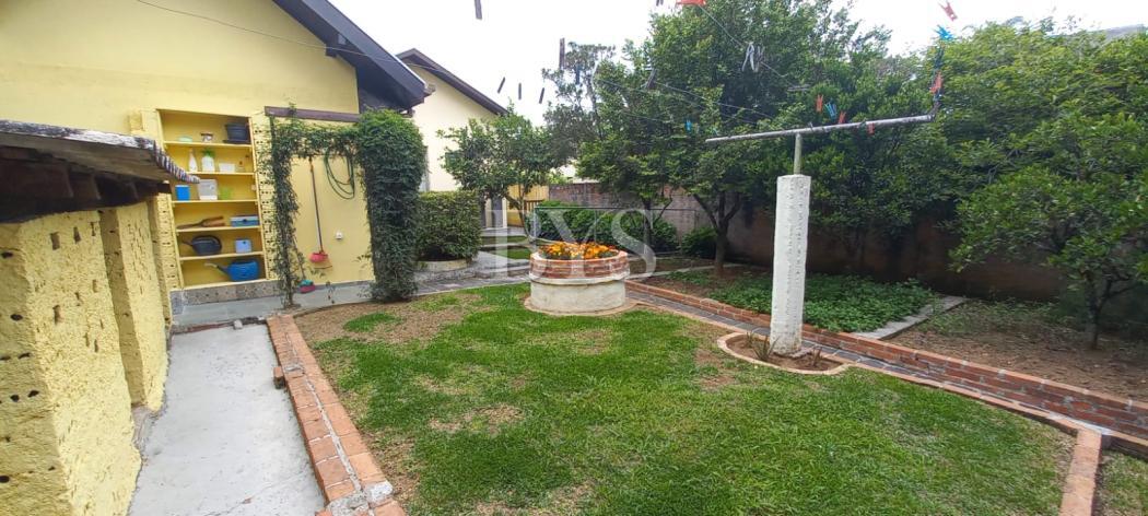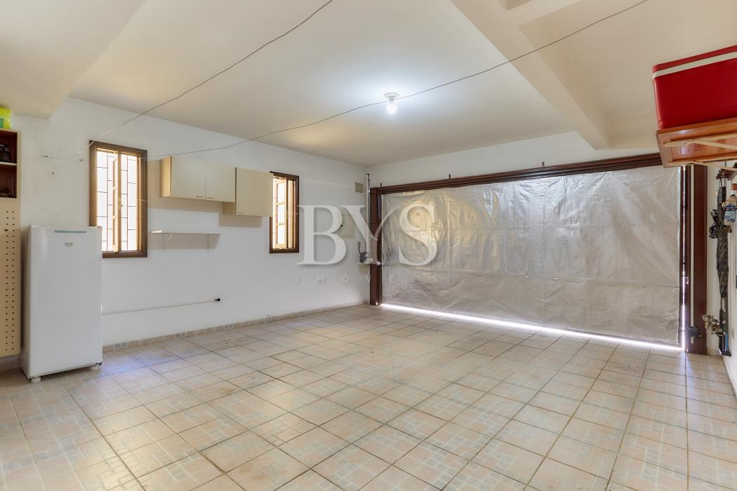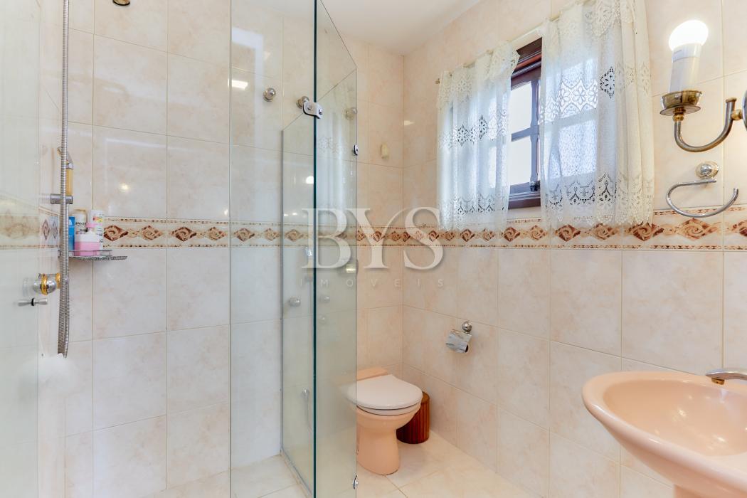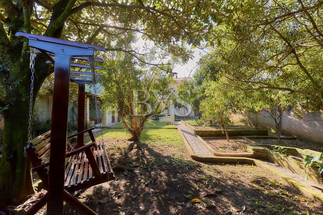 A casa principal é um sobrado com 198 m², face norte, muito ensolarada, com três quartos, sendo uma suíte ampla com ar-condicionado. As salas são integradas e contam com lareira, sacada e lavabo. A cozinha possui despensa e lavanderia, além de garagem coberta para dois carros e sistema de alarme monitorado.