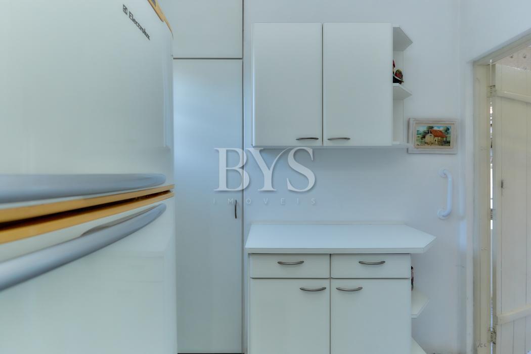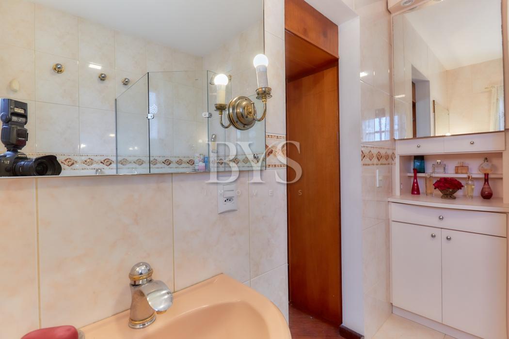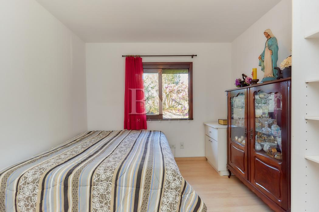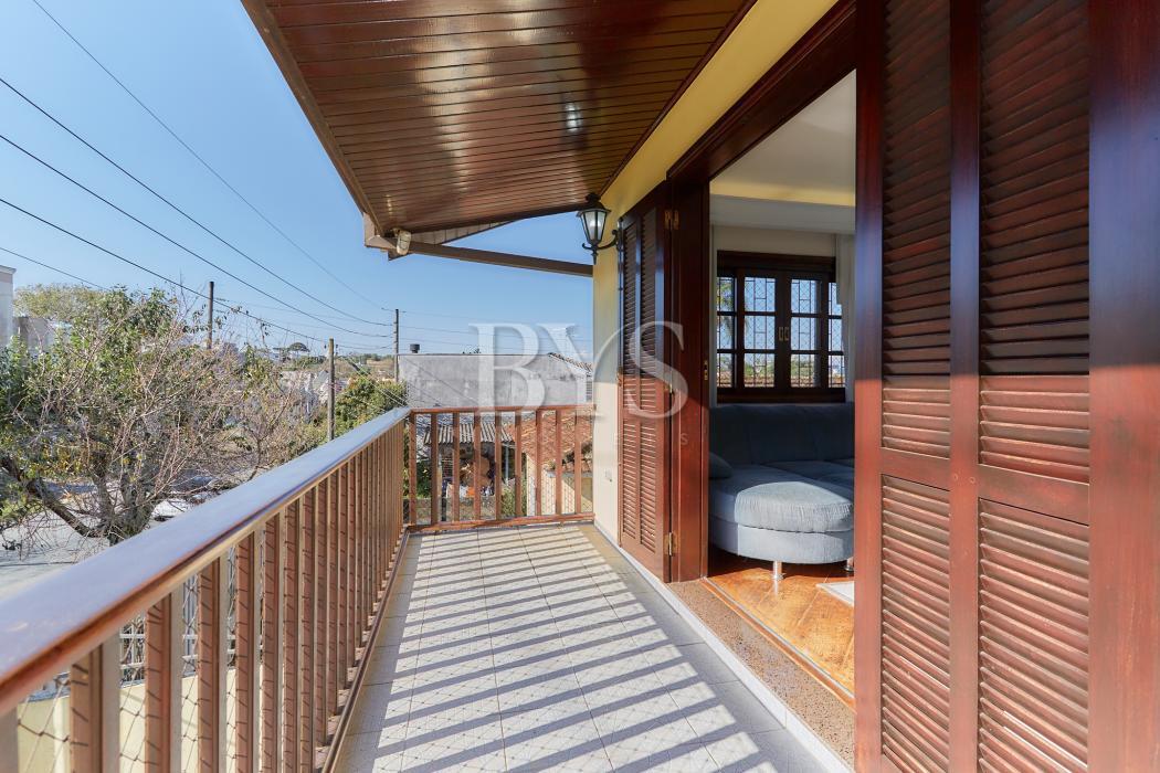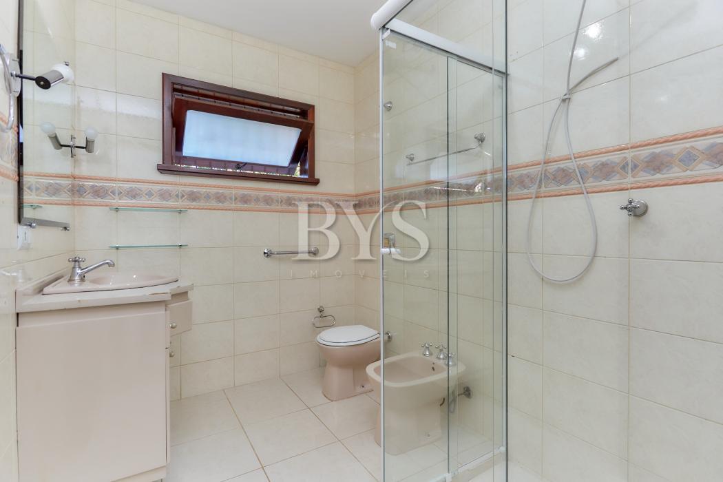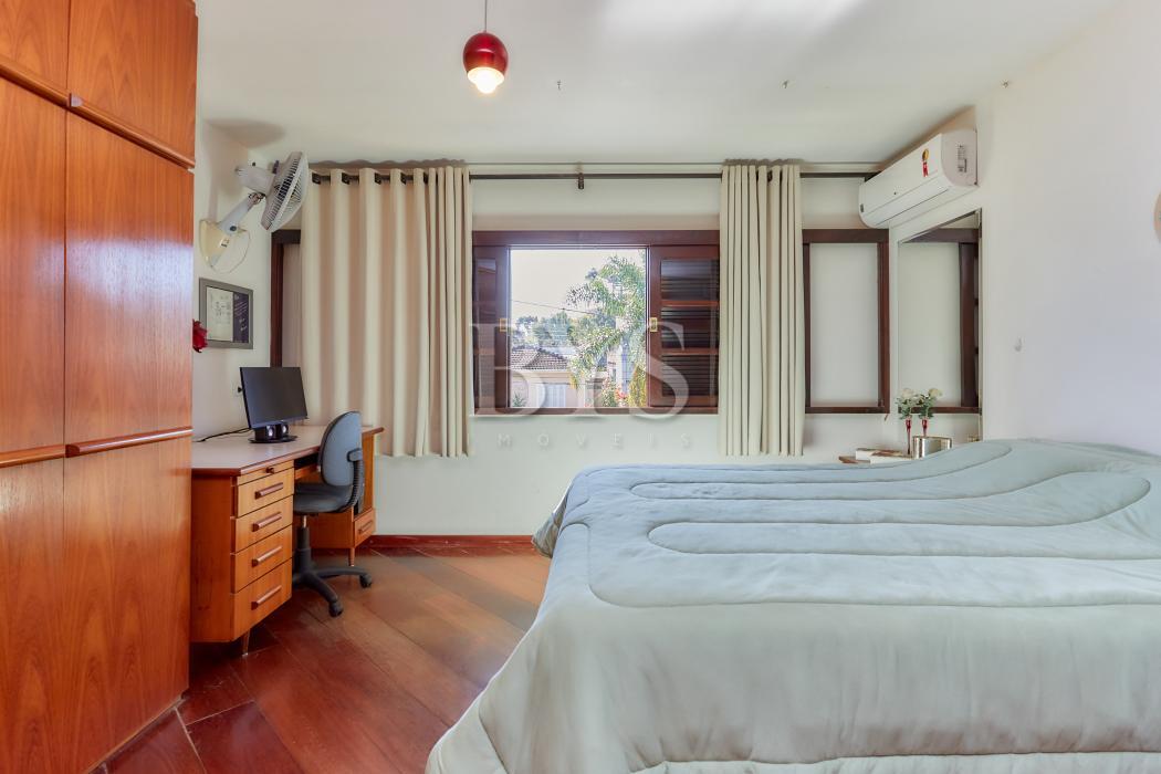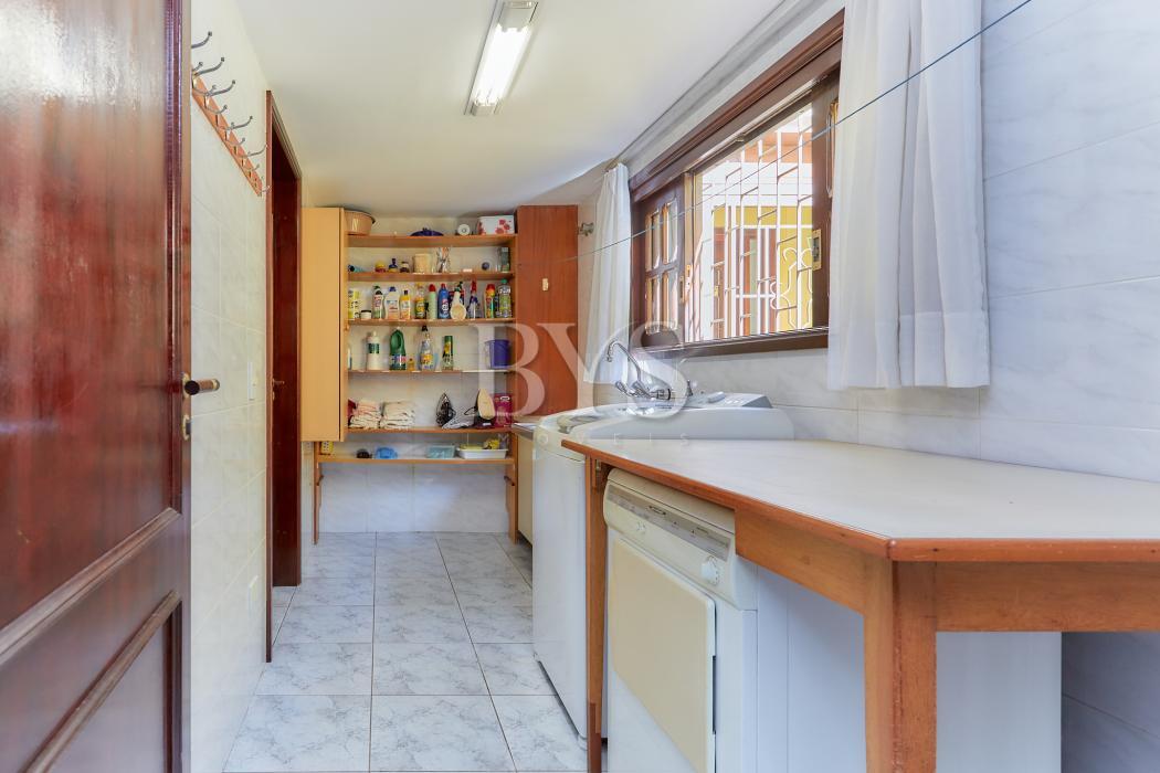 A casa principal é um sobrado com 198 m², face norte, muito ensolarada, com três quartos, sendo uma suíte ampla com ar-condicionado. As salas são integradas e contam com lareira, sacada e lavabo. A cozinha possui despensa e lavanderia, além de garagem coberta para dois carros e sistema de alarme monitorado.