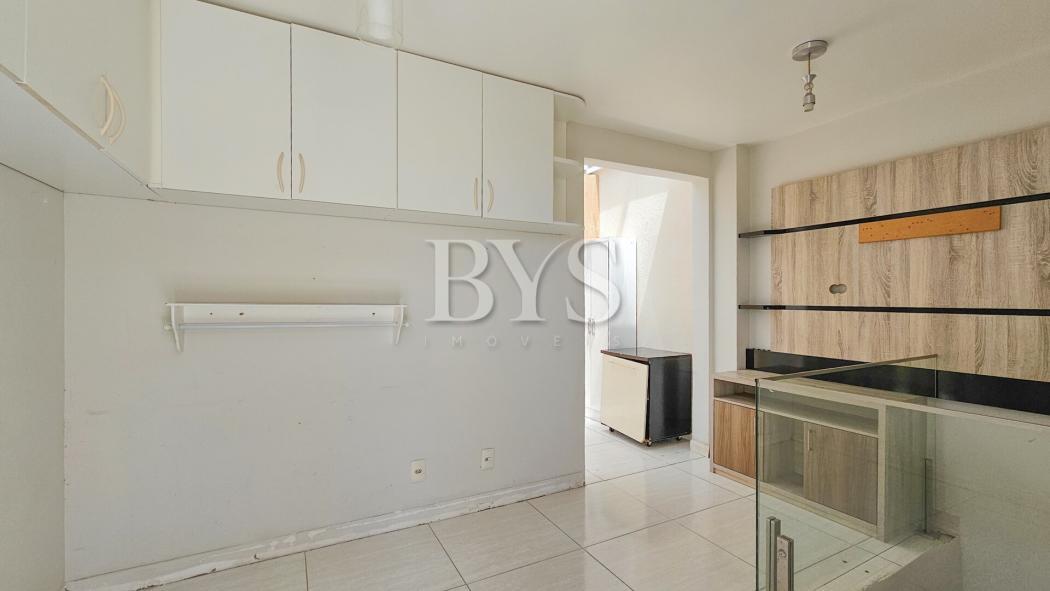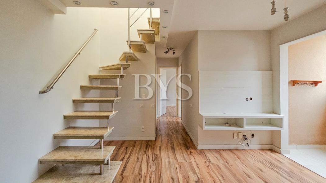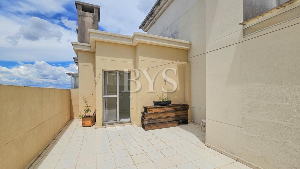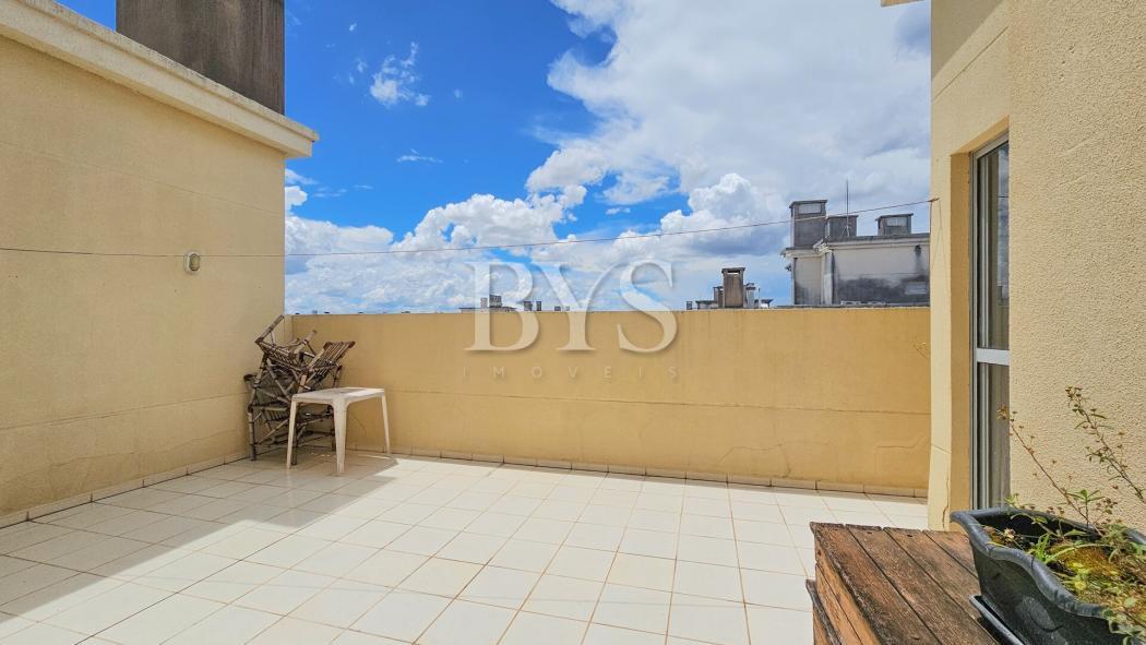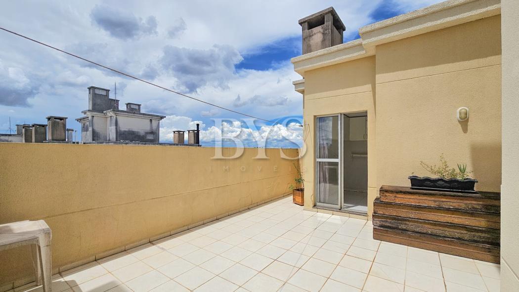 Apartamento com dois pavimentos, sendo o inferior apartamento tipo e o superior ático com terraço, lavabo e área de serviço coberta.