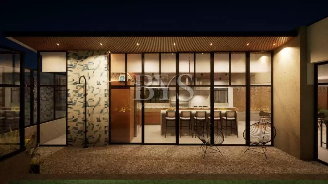 - Área gourmet com churrasqueira a carvão com espaço externo integrado