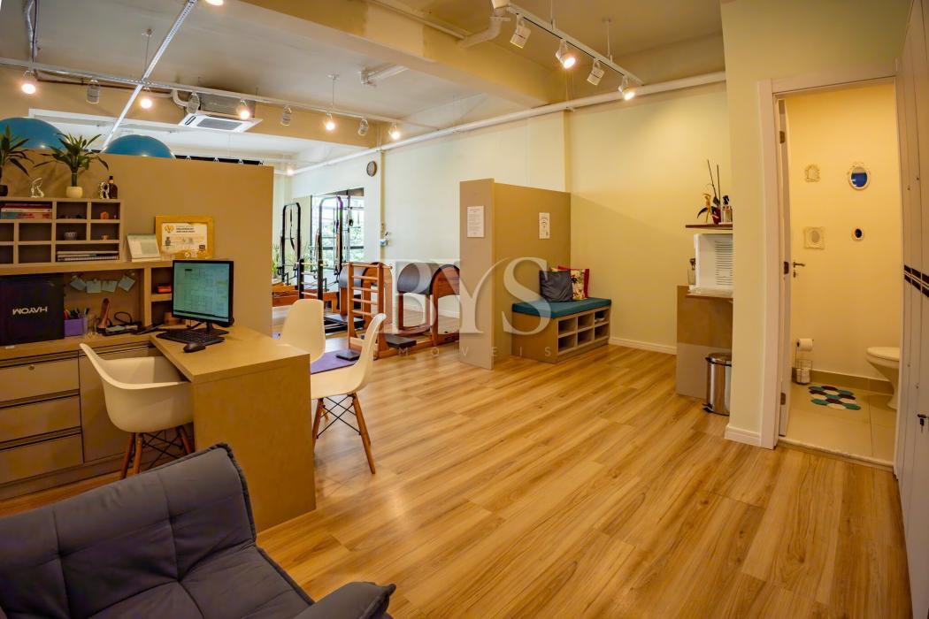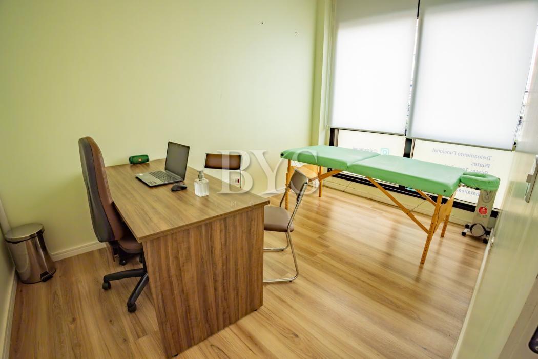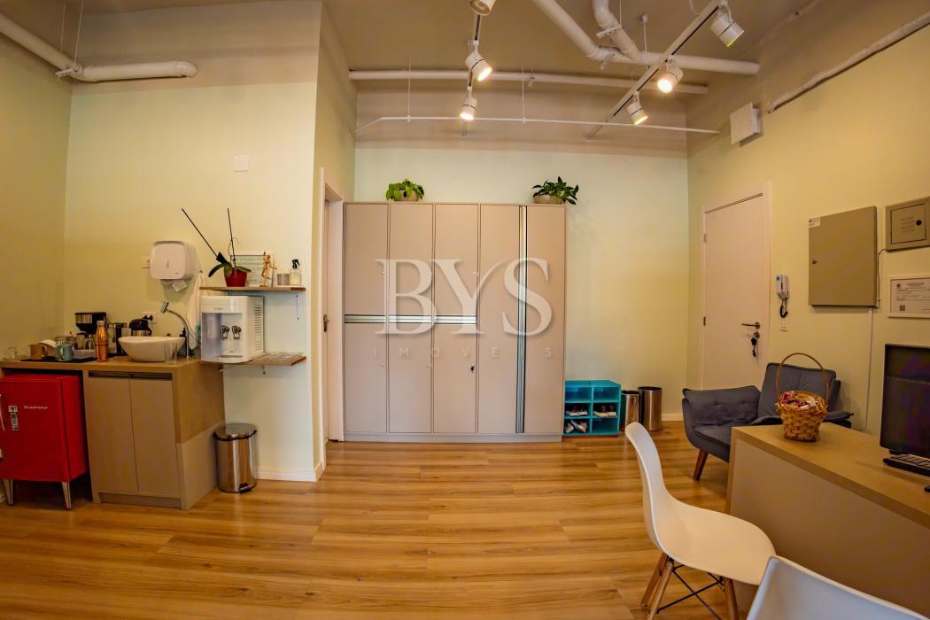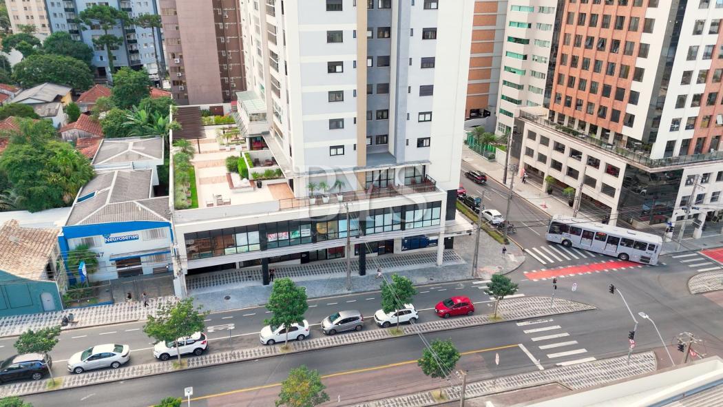 Sala comercial à venda no Cabral em Curitiba com 85,98 m² privativos, 2 vagas de garagem e excelente iluminação natural.