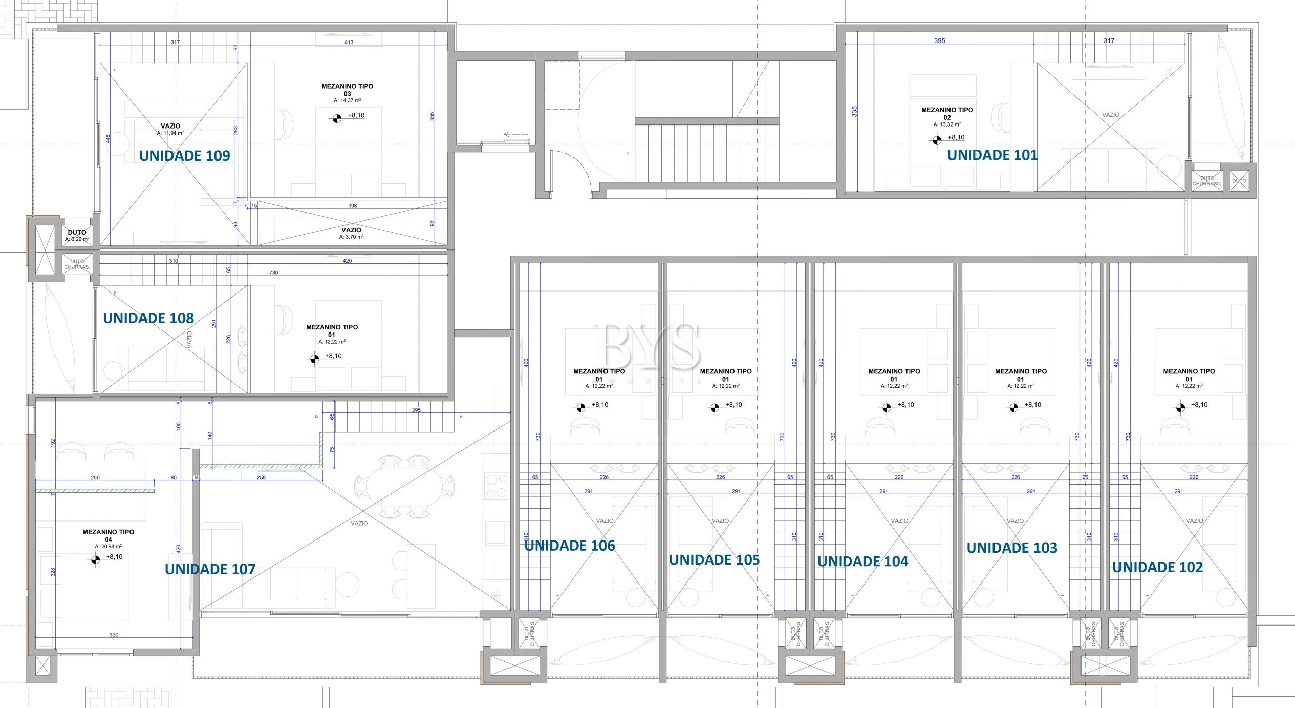 Studios duplex a partir de 27m², com pé-direito duplo de 4,20m, todos com sacada e churrasqueira;